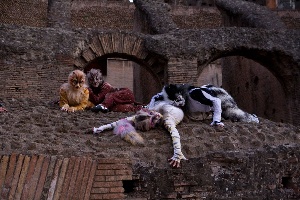 È stato quindi naturale per la Compagnia della Rancia decidere di presentare ufficialmente il cast italiano di “Cats” al Colosseo: non solo la cornice più adatta, ma anche quella più prestigiosa per lo spettacolo-evento della stagione 2009/2010. Grazie alle traduzioni (dopo più di dieci versioni in altre lingue) tutto il pubblico italiano potrà finalmente entrare nell’universo di questi gatti davvero speciali, che da quasi trent’anni, nel resto del mondo, incantano gli spettatori di ogni età. Nell’anteprima di spettacolo presentata al Colosseo sono stati svelati per la prima volta i tratti del “muso”, i costumi originali e le movenze feline dei Jellicle Cats italiani. Francesco Martini Coveri è partito dallo studio delle forme e dei costumi storici di Cats per arrivare a realizzarne di più morbidi e fluidi: rendendo allo stesso tempo i gatti più habillé e più vivi, li attualizza e caratterizza con stile pop. La creatività e l’esperienza in