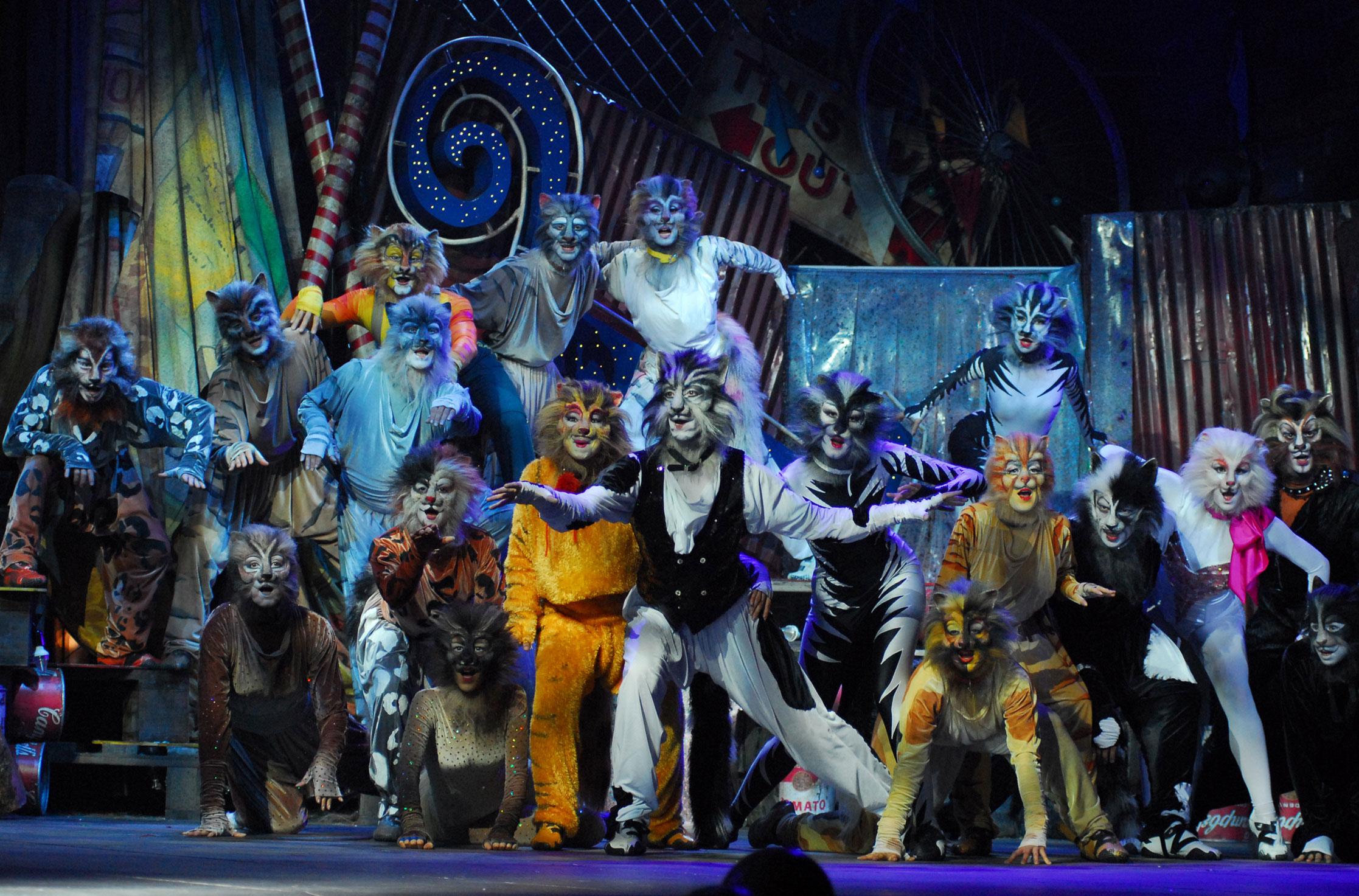 campo teatrale di Zaira De Vincentiis sono state dedicate alla realizzazione di parrucche e make-up che caratterizzano ancora di più le personalità dei singoli personaggi, attraverso un complesso processo di trasformazione da “umano” a “gatto”. Nuova ambientazione, carica di suggestioni, per la scenografia disegnata da Gabriele Moreschi: i gatti Jellicle italiani si incontreranno nella discarica vicino ad un vecchio luna park.